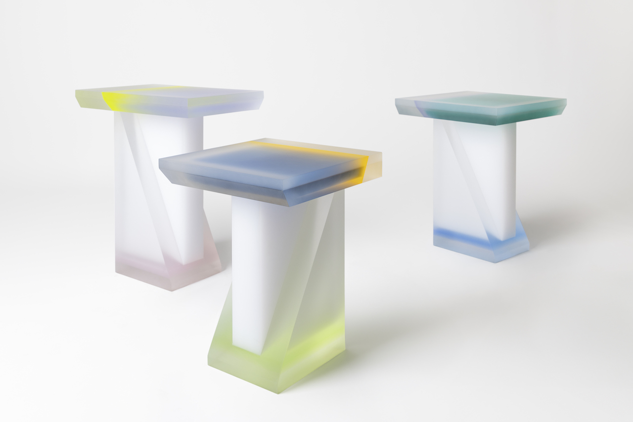 Como artistas y artesanos, nuestra fascinación por el color y nuestro interés por la luz como activador del color a través de la materia es algo que siempre nos ha interesado. Investigamos y todavía estamos explorando esta interacción cambiante, por lo que es un desafío. Descubrimos que la resina es el mejor material para jugar con el color y la luz. Lo que hemos logrado es el resultado de muchos años de experimentación e investigación. Durante el proceso de diseño utilizamos muestras de materiales, combinándolos en diferentes colores, formas y espesores. Observamos la reacción de la luz al atravesar diferentes capas, y sólo entonces vemos la perfecta interconexión entre color, luz, materia y forma.