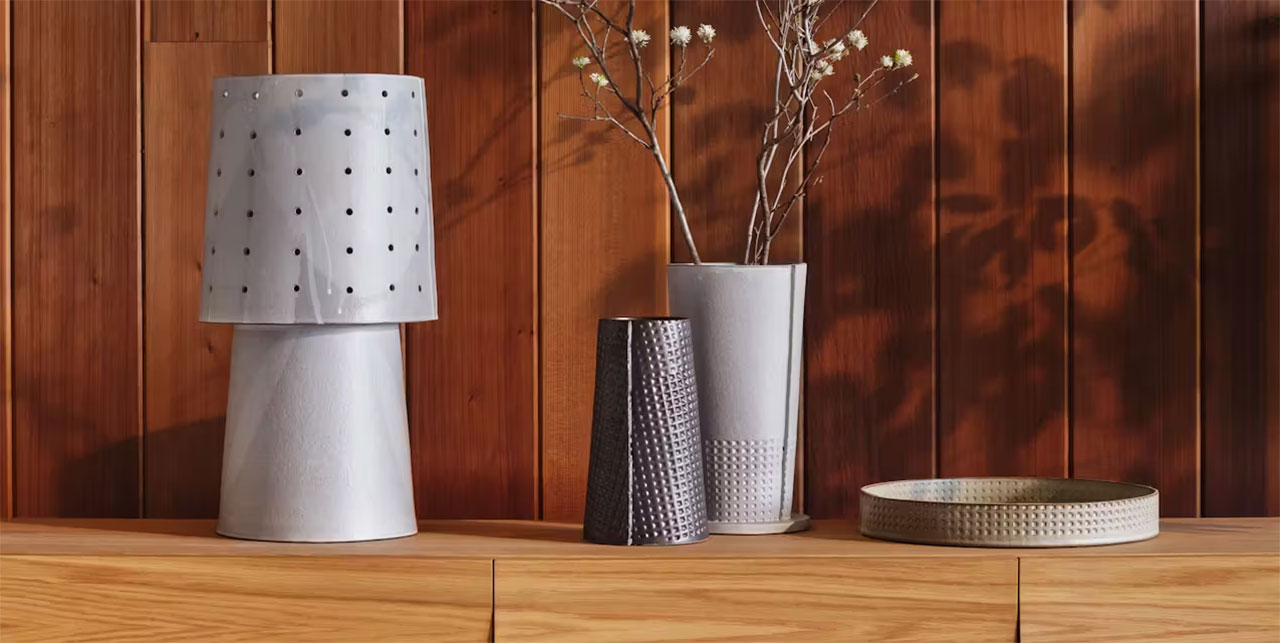 alfarero charlie dumaisUno de los cofundadores de Dumais Made, ha estado influenciado durante mucho tiempo por los principios del modernismo (razón, orden y líneas limpias) que encajan perfectamente con el trabajo de maestros de la arquitectura como Marcel Breuer. Aunque Lichfield es conocido principalmente por sus casas coloniales, Blore y sus contemporáneos (Elliot Noyce, Edward Larrabee Barnes y otros) dejaron aquí un legado duradero: una huella modernista que pocos esperaban. Dumais encarna este espíritu medieval con Modern Bohemia, una colección de 18 lámparas, muebles y accesorios de cerámica, siete de los cuales están especialmente diseñados para Diseño accesible.
