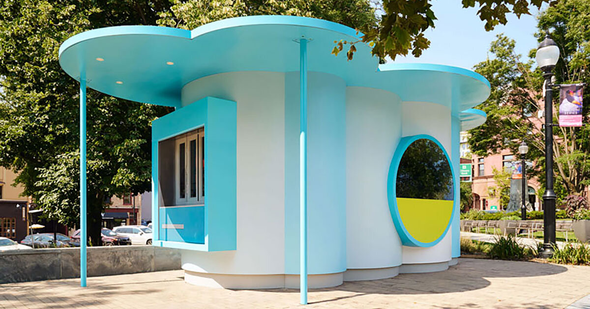 Para la nube, dúo creativo Wade y Letta, y estudio RENZ+OEI sistematiza las nubes en formas geométricas que contrastan con el entorno natural del parque. Sus colores brillantes y formas dinámicas crean una sensación de movimiento y ligereza, dándole una apariencia atractiva y escultórica. Un pilar para los vendedores de comida locales de Vermont, el quiosco combina arte, arquitectura y funcionalidad en un solo espacio. La estructura encarna la fusión de arte y arquitectura, utilizando un lenguaje de diseño lúdico para crear la atmósfera animada del parque. Diseñado para activar el espacio público, The Cloud agrega un elemento visual único al Burlington City Hall Park, mejorando su papel como centro comunitario.