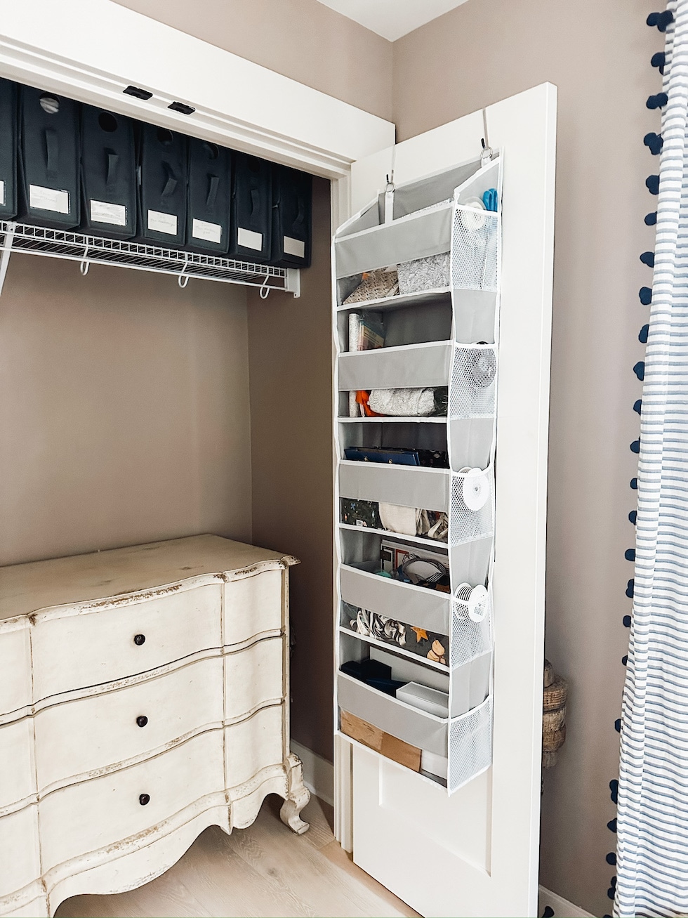 Me encantan estos impresionantes tonos de lino (no en la foto) organizador debajo de la cama (¡Los usamos como almohadas adicionales en la habitación de invitados!).