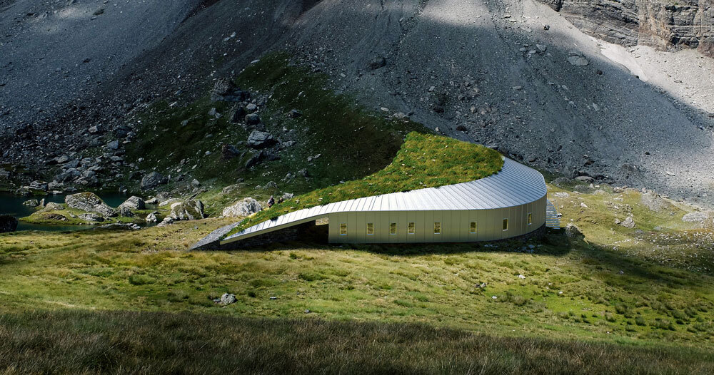 El refugio cubierto de hierba de snøhetta rozará las laderas de los Pirineos franceses