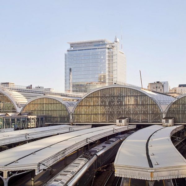 El cubo de 55 x 55 metros contiene oficinas privadas y forma la mayor parte del edificio, mientras que su base contiene instalaciones públicas y una plaza que conecta el edificio con el metro de Londres.