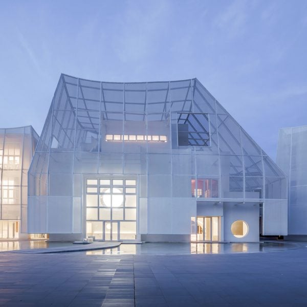 Las membranas translúcidas también se han utilizado en los últimos proyectos de Wutopia Lab Renovación del antiguo parque industrial de Shanghaiahora sirve como un espacio cultural de uso mixto con una serie de estructuras onduladas.