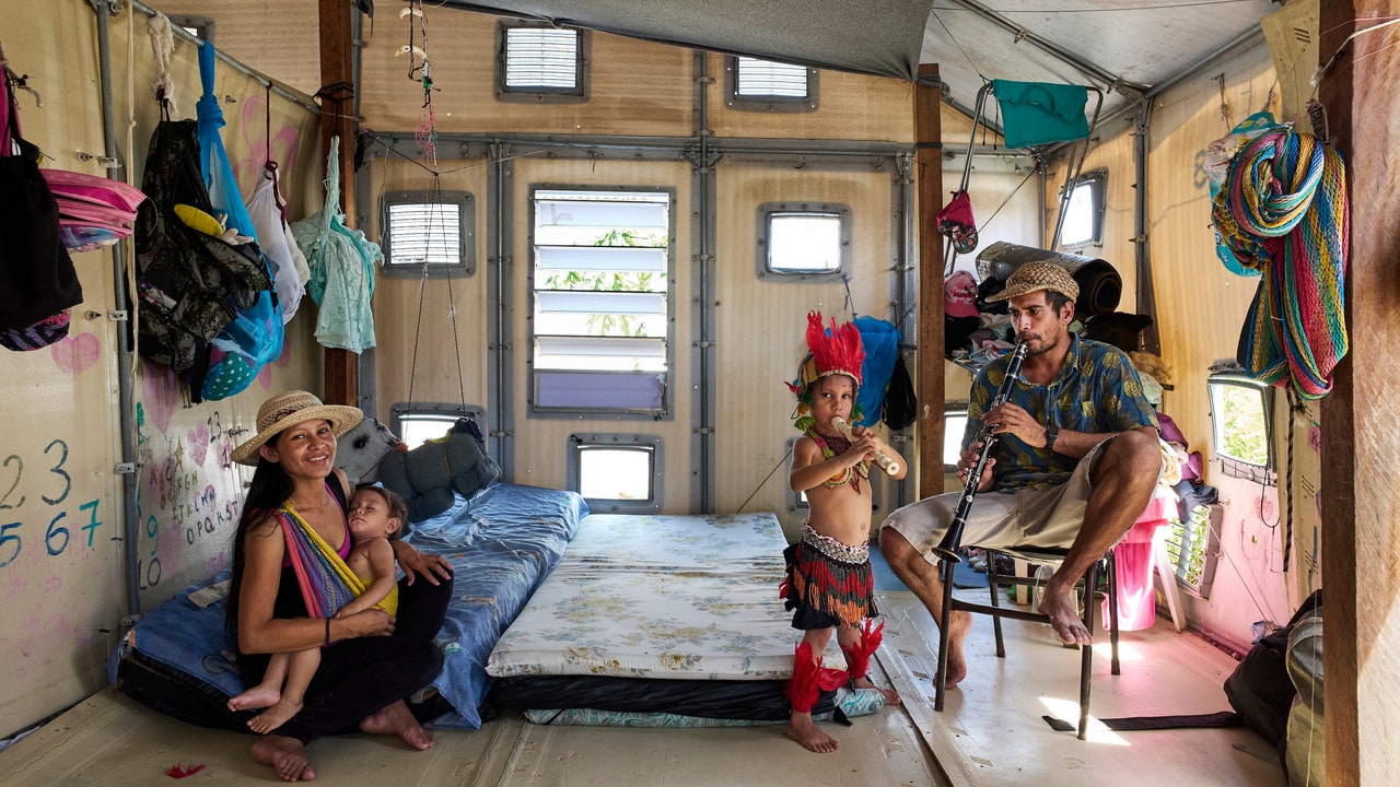 «En todos los lugares en los que he estado, han recreado una sensación de hogar que tenían que dejar atrás», explica Wallander, que ha fotografiado las casas de personas como ésta. Alex RodríguezMichael S. Smith y Adam Lipps anunciar. Los fotógrafos observaron a un escalador venezolano llamado Leo usando su conocimiento avanzado sobre nudos para colgar un caballito del techo para su hija en Boa Vista, Brasil. En Cachar, India, donde los refugiados fueron evacuados después de las inundaciones, «vi los refugios decorados con más colores», añadió. “La gente cubrió las paredes y los techos con hermosas telas para hacer que el refugio fuera más suave y personal”, recuerda Woland sobre el refugio que Mongar compartió con su hermana. “Los saris estaban colgados en postes de bambú. Es a la vez una hermosa decoración interior y un práctico guardarropa. .”