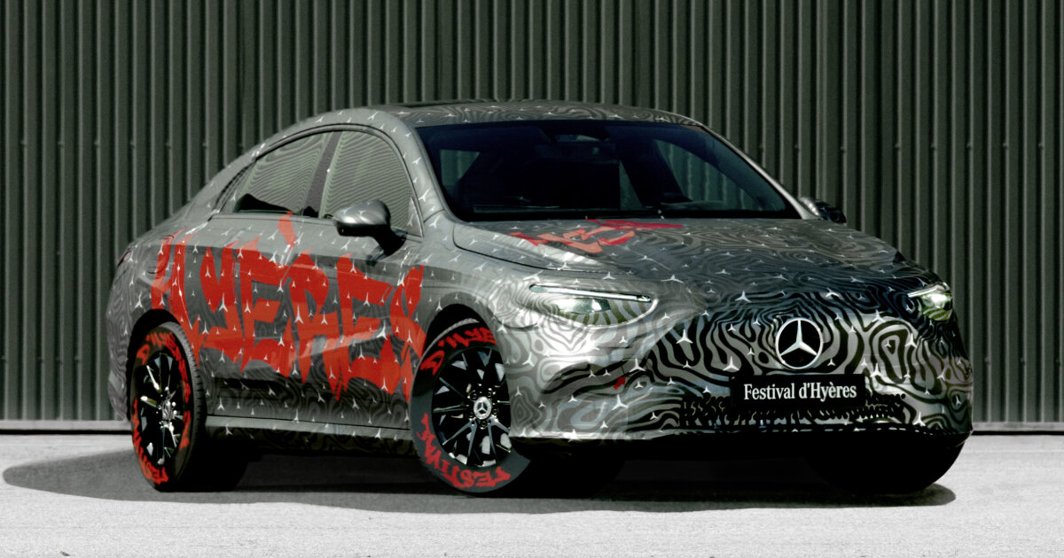 Mercedes-Benz presenta el CLA coupé con una piel erlkönig de camuflaje personalizada en el festival d’hyères