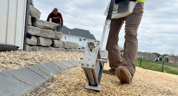 avispa de alimento básico La innovadora clavadora está diseñada para simplificar la instalación de mantas de control de erosión, geotextiles, revestimientos y más, alineándose con el objetivo de la empresa de brindar soluciones más rápidas, seguras y ergonómicas a los profesionales de las industrias de la construcción y el paisajismo.
