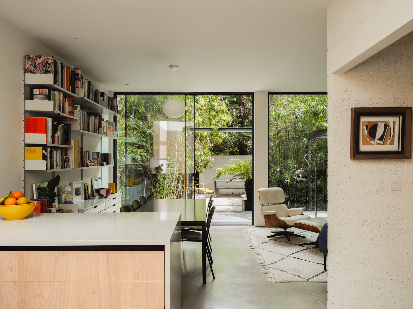 Quinn Architects, que se especializa en renovar y preservar edificios modernistas, marcó todas las casillas correctas para Ruth, quien buscó agregar un segundo piso y reformar el interior manteniendo intacto el espíritu de la casa. «Realmente estudié arquitectos y cómo responderían a este tipo de casa», dice Ruth, quien fundó la firma con casas contemporáneas. Tabla de contenido. «El sitio requería cierta comprensión ya que es un lugar muy especial. Además, estamos ubicados en un área protegida, por lo que las actualizaciones debían tener en cuenta el entorno circundante.