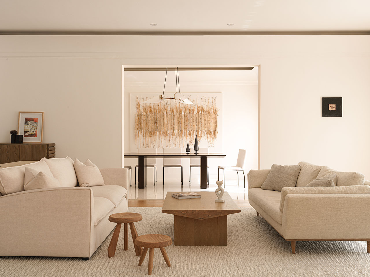 Si bien la colaboración es típica de la industria, este proyecto es sin duda un esfuerzo conjunto. La experiencia arquitectónica de Braginskaya es evidente en la estructura y la planificación, y su influencia se extiende a la elección del mobiliario. Bethel transforma las paredes de desnudas a hermosas a través de una cuidada selección de muebles, arte y artefactos, incluidas algunas de sus propias piezas originales. “Nos conocíamos desde hacía mucho tiempo, desde la escuela de diseño, donde Marina Braginskaya enseñaba mientras yo terminaba mis estudios”, recuerda Bessel. «Cuando me mudé a Dubai, le pedí ayuda porque ya tenía su propia empresa».