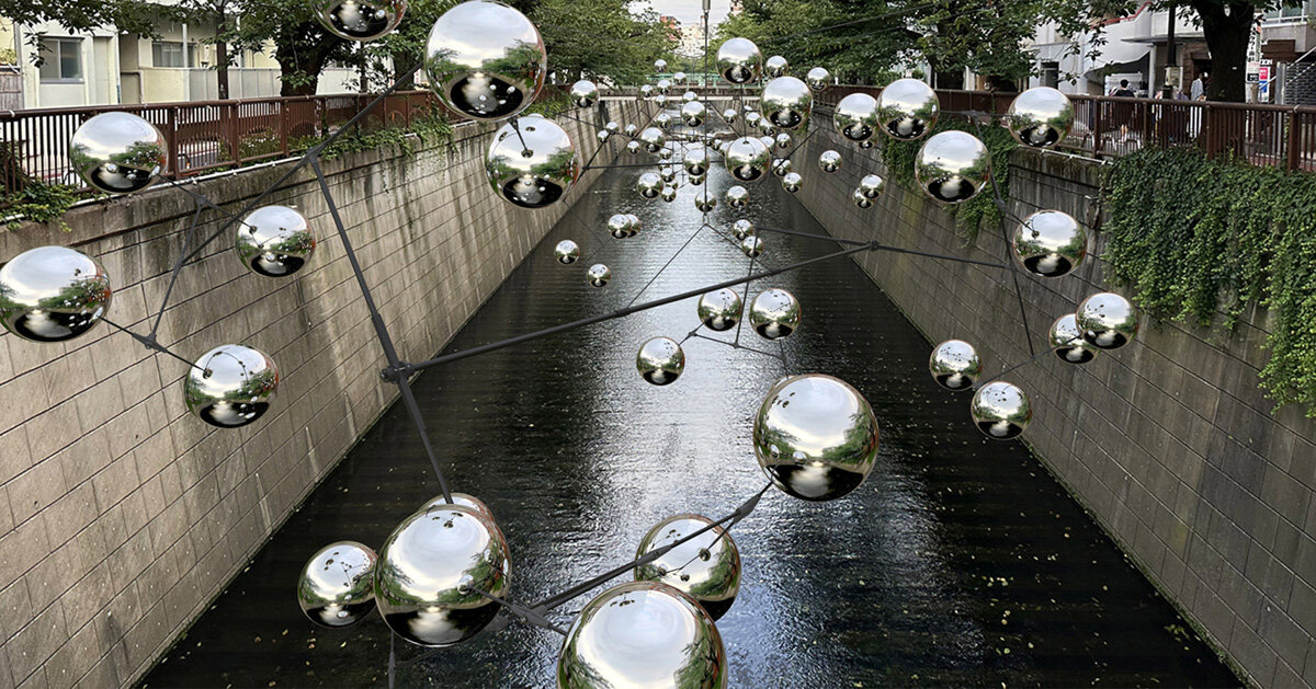 artista francés Vicente LeRoy Transformar el Canal Nakameguro en Tokio en lo fascinante Instalar y su último trabajo, «Esfera flotante». Hecho de varillas de carbono, impresión 3D Compuestas por componentes y esferas espejadas, estas gigantescas instalaciones móviles giran sobre la superficie del agua, reaccionando sutilmente al movimiento del aire. Su estructura equilibrada crea una presencia divina que realza el entorno urbano con una visión de otro mundo. Las esferas capturan y distorsionan su entorno, produciendo luz reflejada que cambia de día y de noche. Mientras se balancean sobre el canal, parecen desafiar la gravedad, formando una constelación en perpetuo movimiento.