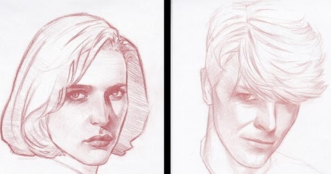 Además de los retratos de celebridades individuales, al final de la página hay tres bocetos de mujeres.