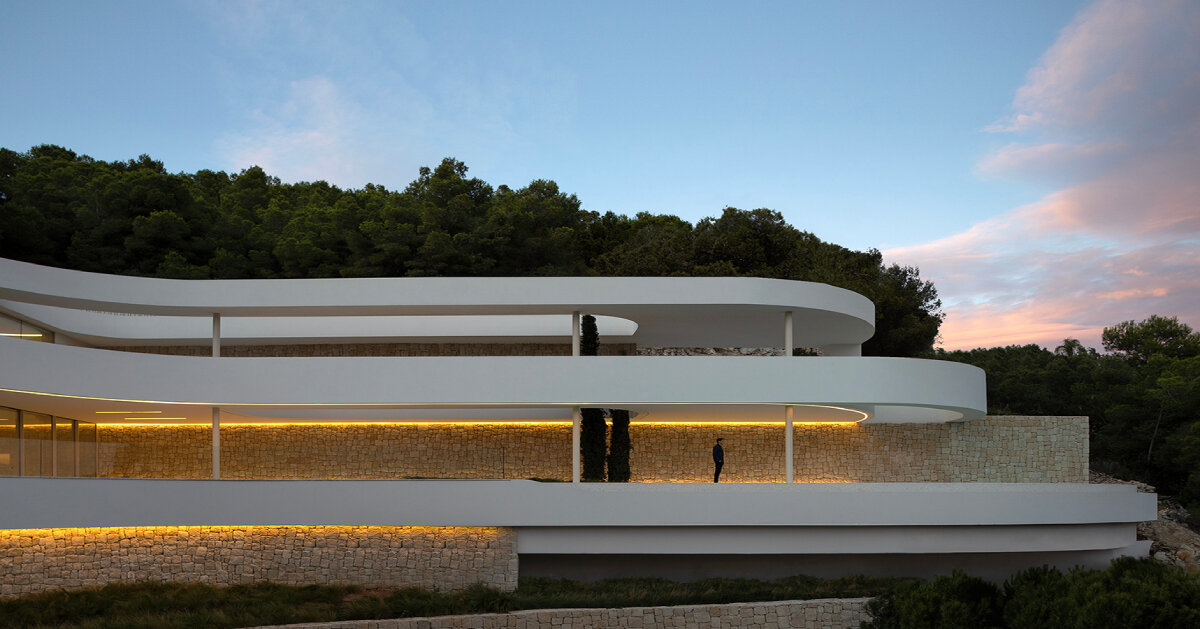 Terrazas sinuosas envuelven una casa en la ladera de una colina en España por pepe giner arquitectos