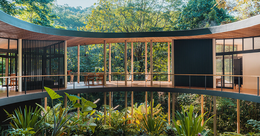 Escondido en lo más profundo Costa Ricaes parte de la península, estudio de saxofónEl último proyecto de Sinfonía Verde ofrece un retiro aislado inmerso en la belleza natural de la selva tropical. El edificio está construido sobre un claro creado por un árbol caído. Residencial Por primera vez, la luz del sol se filtra a través del denso dosel del bosque, creando una oportunidad única para que los clientes (dos investigadores) vivan fuera de la red, rodeados de naturaleza virgen.