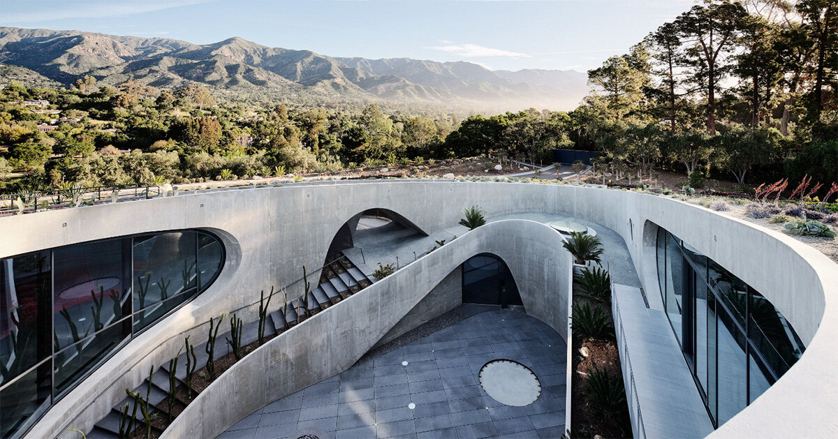 El estudio de diseño interdisciplinario Donaldson + Partners lanza Hill House Montecito, específico Residencial quedarse en cama California, a nosotros. Encargada por una pareja de artistas, la casa combina arte y arquitectura en 1.300 metros cuadrados (14.000 pies cuadrados) de espacio habitable. La casa emerge sutilmente del terreno de la ladera antes de revelar su estructura circular completa, completa con paneles solares y un techo verde, equilibrando esta fachada monumental de una manera divertida y fluida. interno espacio. Robin Donaldson, socio fundador de Donaldson Partners, Describe el proyecto como «La relación simbiótica entre la casa y la naturaleza, y la expresión de la arquitectura del siglo XXI en el paisaje.»