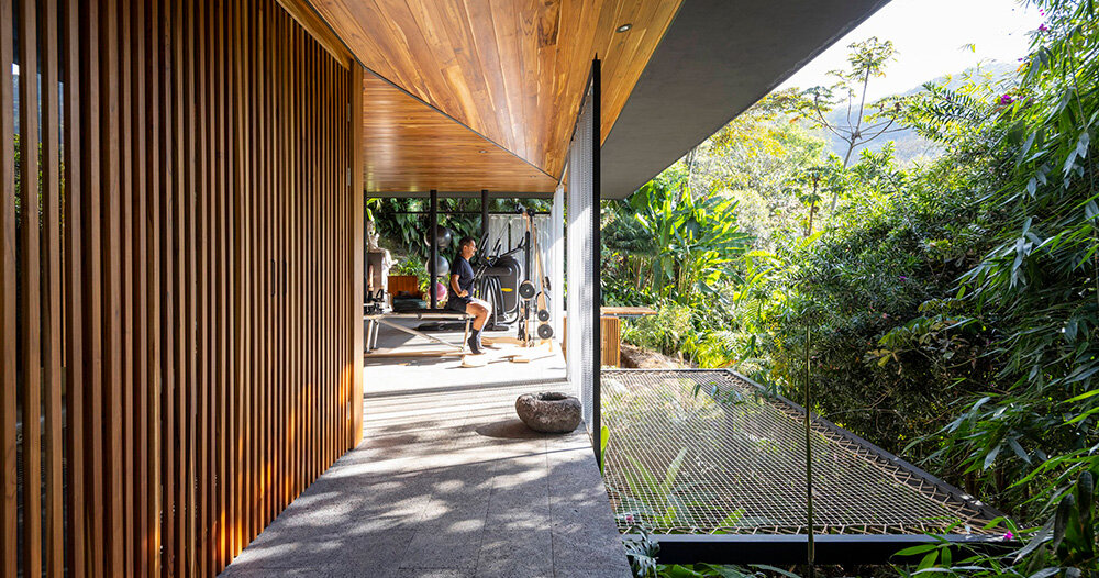 La arquitectura del Jungle Gym es sensible a su entorno tropical. VOID utiliza materiales y técnicas de construcción locales, enfatizando líneas limpias y un lenguaje de diseño minimalista, permitiendo que el edificio desaparezca entre los densos bosques. Este compromiso con la simplicidad y la sostenibilidad resalta el compromiso de los arquitectos de crear una estructura que complemente en lugar de competir con su entorno.
