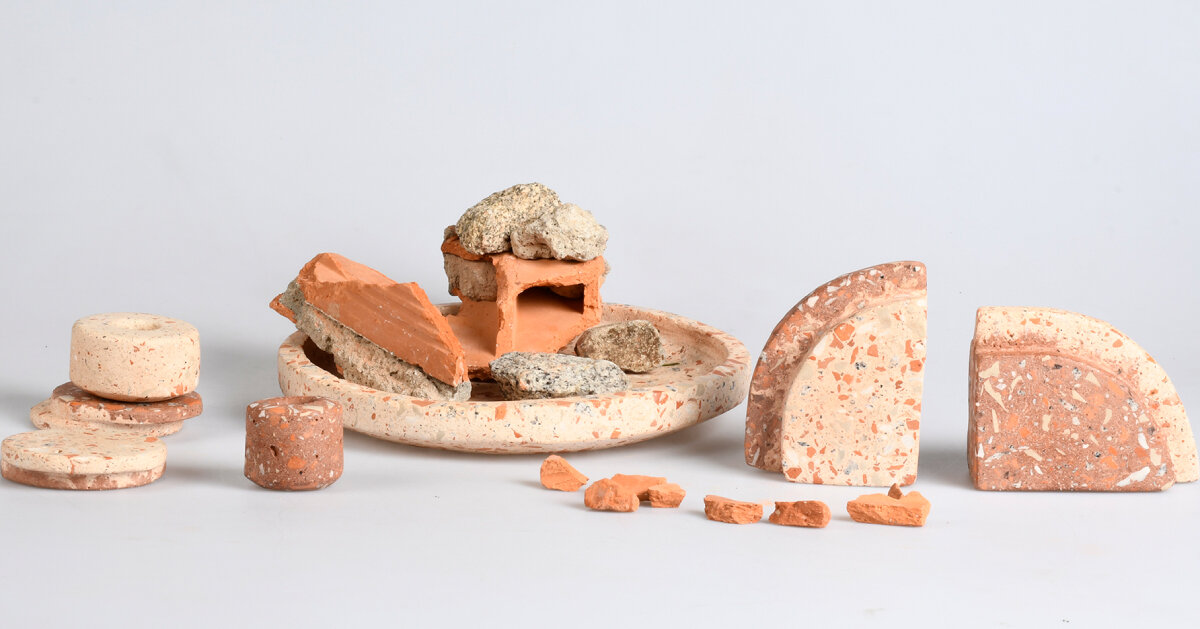 “Fragmentos del pasado: residuos de construcción como recurso” se desarrolló utilizando residuos de la industria de la construcción, con el objetivo de agregar valor y mejorar los subproductos industriales en Oporto, Portugal. Un proyecto de investigación liderado por Mayra Deberg combina hormigón, ladrillos y cerámica con polvo del procesamiento de la piedra de granito, convirtiendo la mezcla en elementos decorativos como sujetalibros y centros de mesa.