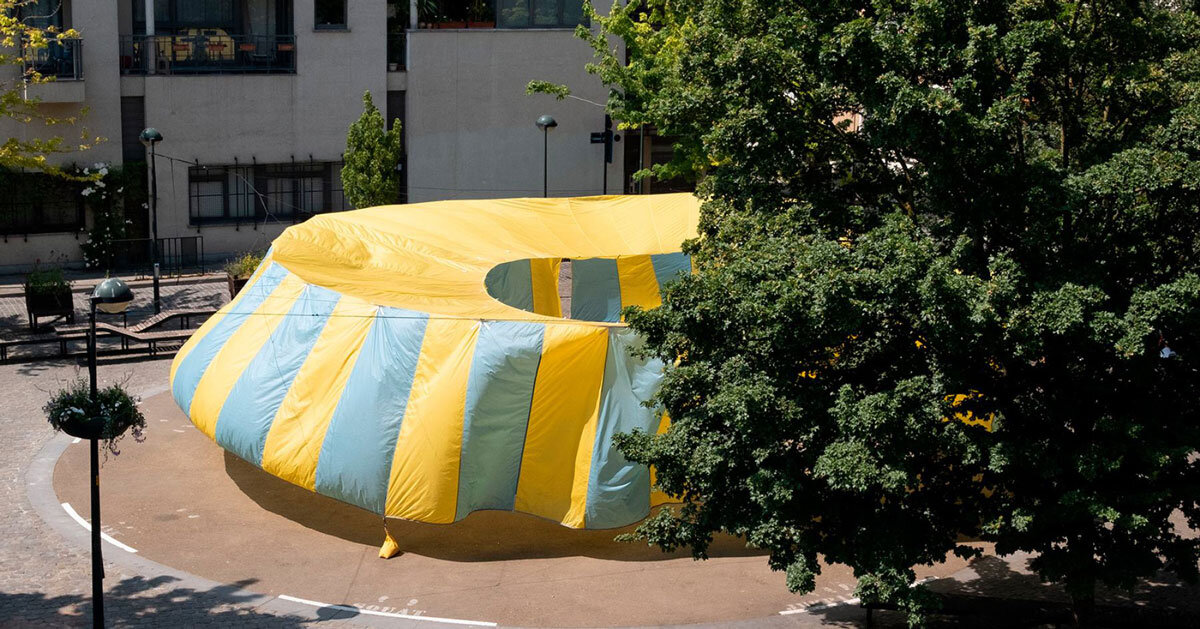 La diseñadora y artista textil residente en Bruselas Marion Aeby explora la interacción entre diseño, materiales y espacio público a través de Rayonne Instalar. Presentado en la Semana del Diseño Holandés 2024, textil Una estructura similar a una tienda de campaña con una gran parte superior y una lona de sombra, hecha enteramente de mitades superiores fuera de servicio. globo aerostáticode reutilizar Tela. Mientras está parado, el proyecto continúa deambulando de una manera nueva, contando la historia de su pasado material y estableciendo un diálogo visual con su entorno.