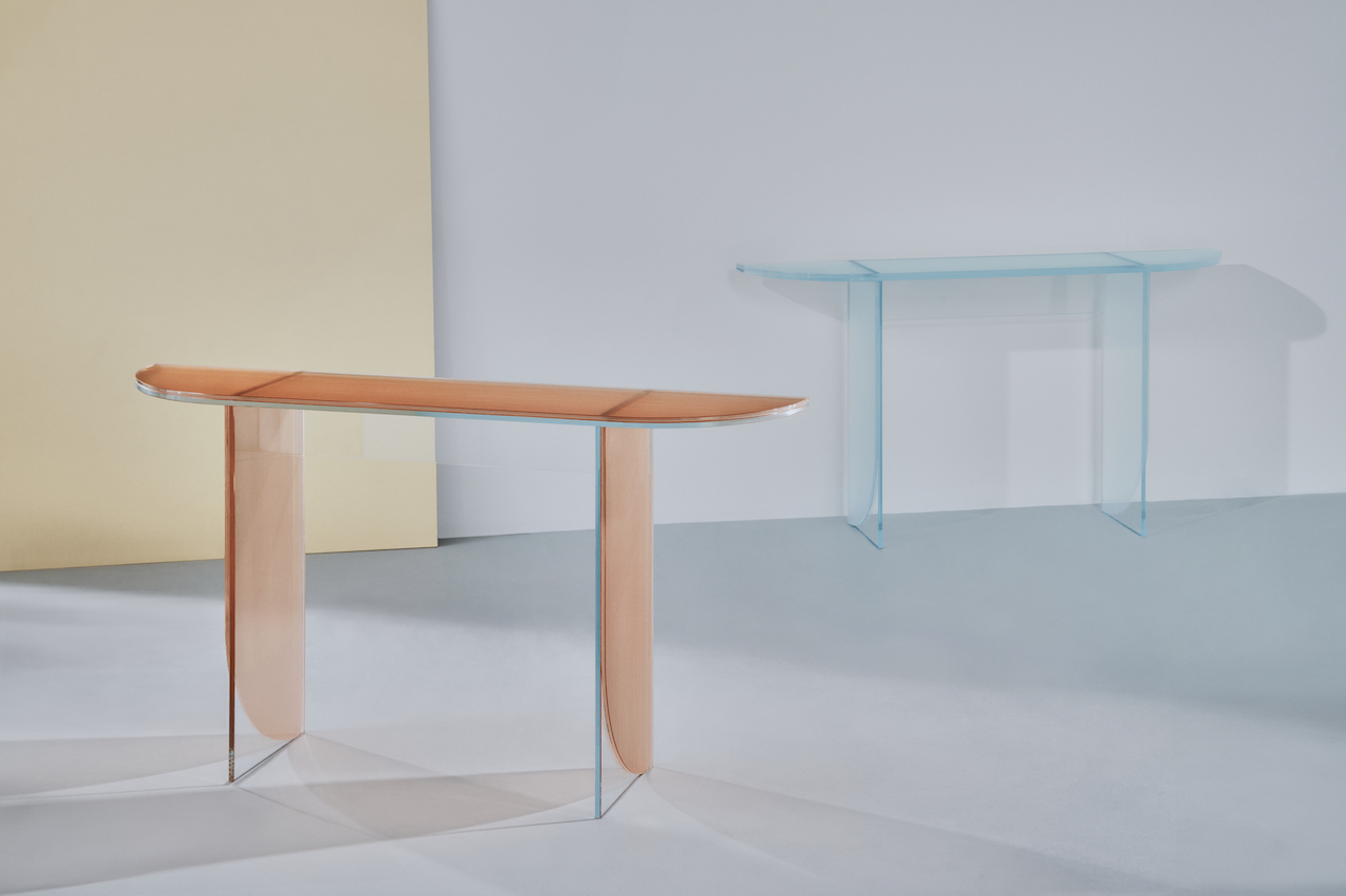 Los muebles deben parecer resistentes y fiables, pero ¿están diseñados para parecer inestables? Ésta es la línea borrosa entre el arte y el mobiliario. Diseñador: Alan Giles para marca francesa Cambios de vidrioeste espejismo recolectar Subvirtiendo el concepto de estabilidad. Cada pieza, ya sea una mesa, un escritorio o una consola, da la impresión de estar a punto de caerse, pero gracias a la inteligente elaboración del vidrio, es más fuerte de lo que parece.