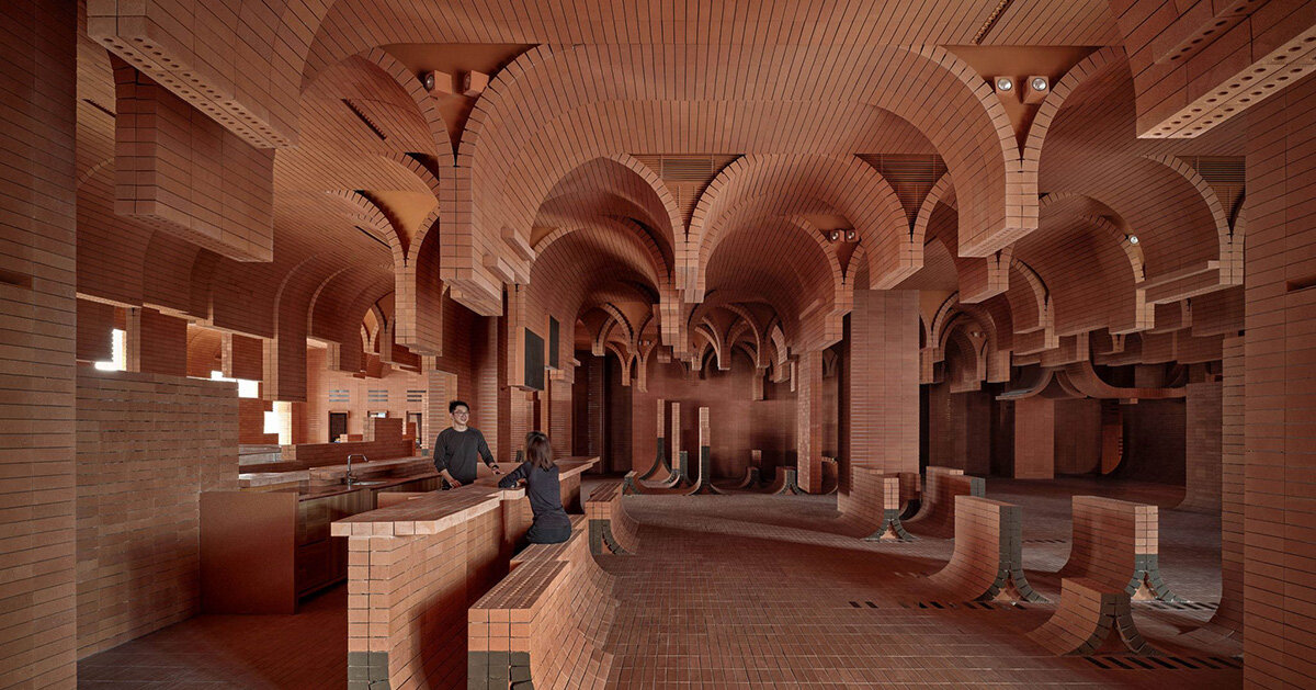 El interior está hecho de equipo En la asociación con OnePlus, hay energía; los ladrillos ondulan, invitando a los invitados a entrar, mientras las luces crean un camino constante a lo largo del piso. Las mesas y sillas siguen un patrón ondulado, con bordes curvos que se ensanchan suavemente como campanas. Algunos ladrillos se elevan como colinas, mientras que otros se asientan bajos y parecen ceder al diseño general. Incluso los pisos reflejan este tema, con suaves ondas grises y una iluminación sutil para guiar cada paso y evitar errores. Las curvas fluidas se extienden a lo largo de las encimeras y las cabinas, con una combinación de colores y formas que evocan ondas formadas a partir de materiales inesperados. A medida que uno se mueve por el espacio, la luz y la sombra juegan en las superficies texturizadas, evocando los relajantes paisajes que se encuentran junto al río o la playa.