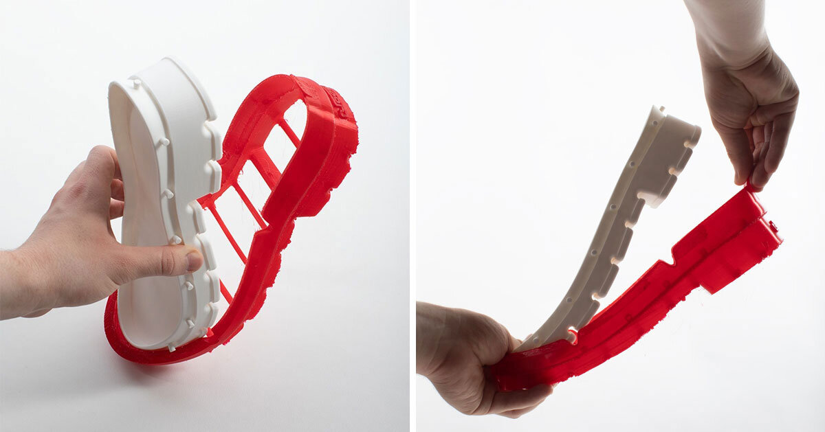 diseñador El concepto de calzado Joon de Clément De Cooman resuelve este problema mediante innovadores componentes elásticos. Los bordes de la suela tienen muescas que conectan con las correspondientes perforaciones en la parte superior del zapato. Pase un elástico a lo largo de estas curvas para asegurar la parte superior a la suela y el ensamblaje estará completo. Las correas elásticas huecas sujetan las muescas de la suela para mantener las piezas juntas. La suela y el elástico están fabricados en TPU 95A, un termoplástico que se funde y recicla fácilmente. La parte superior está hecha principalmente de cuero y contiene materiales adicionales mínimos, como una pequeña cantidad de tela elástica, que se puede quitar gracias a que está ligeramente cosida en su lugar. Este diseño no sólo permite separar fácilmente los zapatos, sino que también devuelve al consumidor el control de la personalización, simplificando así la gestión de inventario y ampliando la vida útil del producto mediante la modularización.