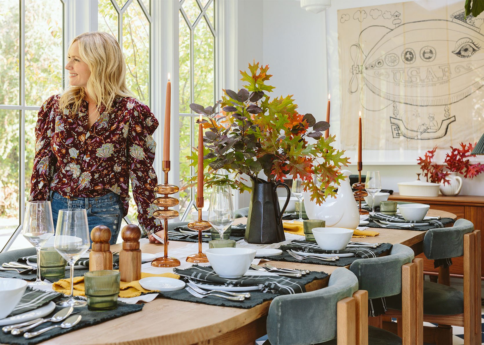 Me encantan los paisajes de mesa y me encanta el estilo, pero no me gusta la presión que la gente puede sentir por tener cosas diferentes para diferentes ocasiones (¿tal vez la gente como yo exacerba esa presión?). Entonces, para esta sesión, me desafié a usar la mayor parte de la misma composición básica, cambiando solo algunos elementos, es decir, más «indicadores de vacaciones» (como colores o íconos). He trabajado con Crate and Barrel en algunas historias sociales, pero no en esta publicación de blog y decidí filmarla porque me gusta el desafío de hacer las cosas más fáciles sin dejar de lucir festivo y divertido. Se me ocurrió esta pieza de «Acción de Gracias hasta Navidad» usando piezas de la historia, pero también puedes usar otras piezas básicas para realizar esta «acción». El truco consiste simplemente en cambiar el «indicador de estacionalidad» (especialmente si eres más informal como yo).