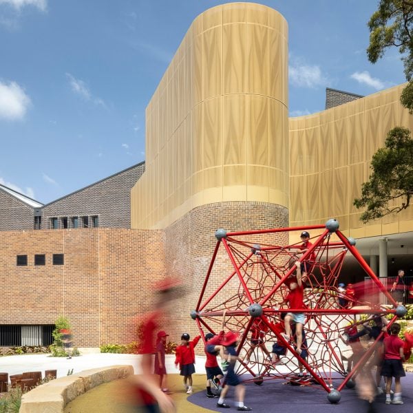 Fjcstudio envuelve la escuela de Sydney con una fachada de aluminio perforado