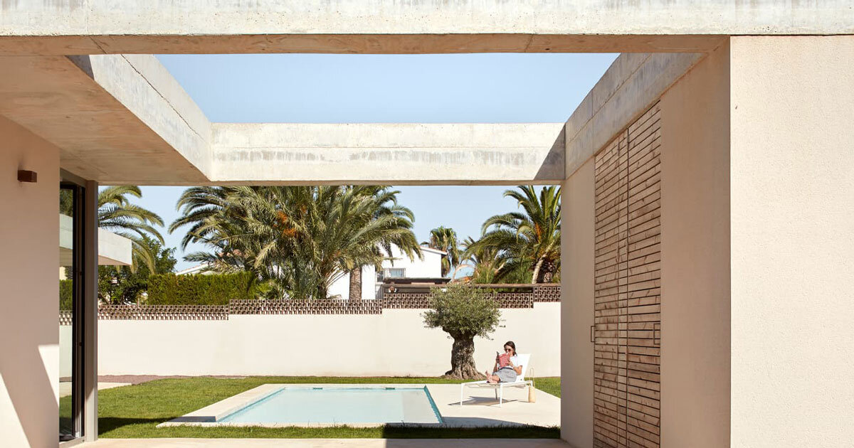 La casa de Denia diseñada por Quadrat estudio está rodeada de patios verdes a lo largo del Parque Natural Español