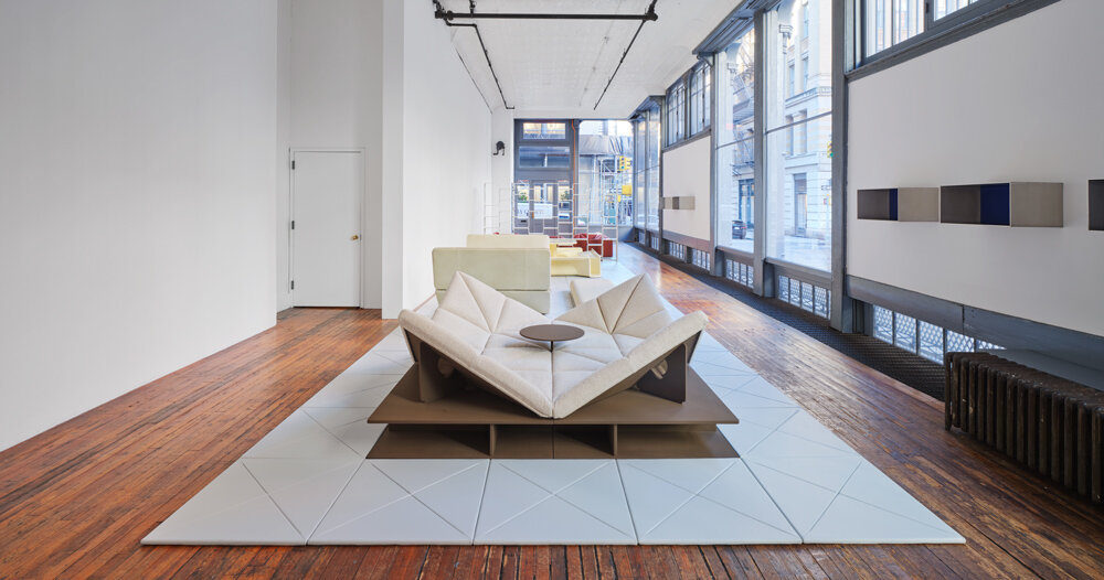 Tapis-Siège, 210 × 210 cm (31 1/2 × 821 1⁄16 × 821 1⁄16 in), Pierre Paulin: Casa de Acción, 16 de noviembre de 2024 – 15 de febrero de 2025, 101 Spring Street, Judd Foundation, Nueva York. Foto Timothy Doyon © Fundación Judd. Donald Judd Arte © Judd Foundation/Artists Rights Society (ARS), Nueva York