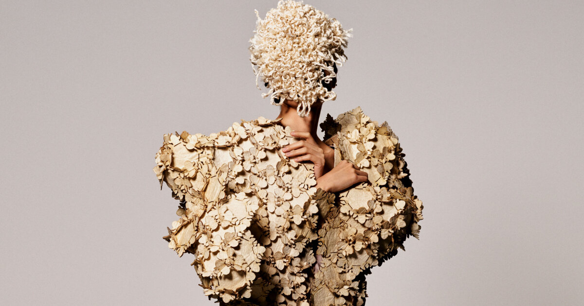 este diseñador Todos fueron retejidos en cortes inspirados en la naturaleza, y los filamentos se unieron con otros materiales para crear vestidos y tocados. Tienen propiedades similares al cuero en términos de textura, durabilidad y versatilidad, dijo. Los desechos de capullos de seda podrían ser una alternativa viable al cuero y podrían ayudar a reducir la cantidad de cáscaras de capullos que se desechan en los vertederos. Espera que esta exposición aporte nuevas tecnologías y métodos a la sericultura, la producción de seda cruda y las prácticas de sericultura.