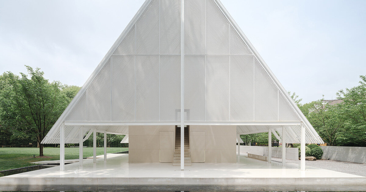 El techo en forma de ala de SHISUO cubre áreas de reunión abiertas en el Shanghai Memorial Park