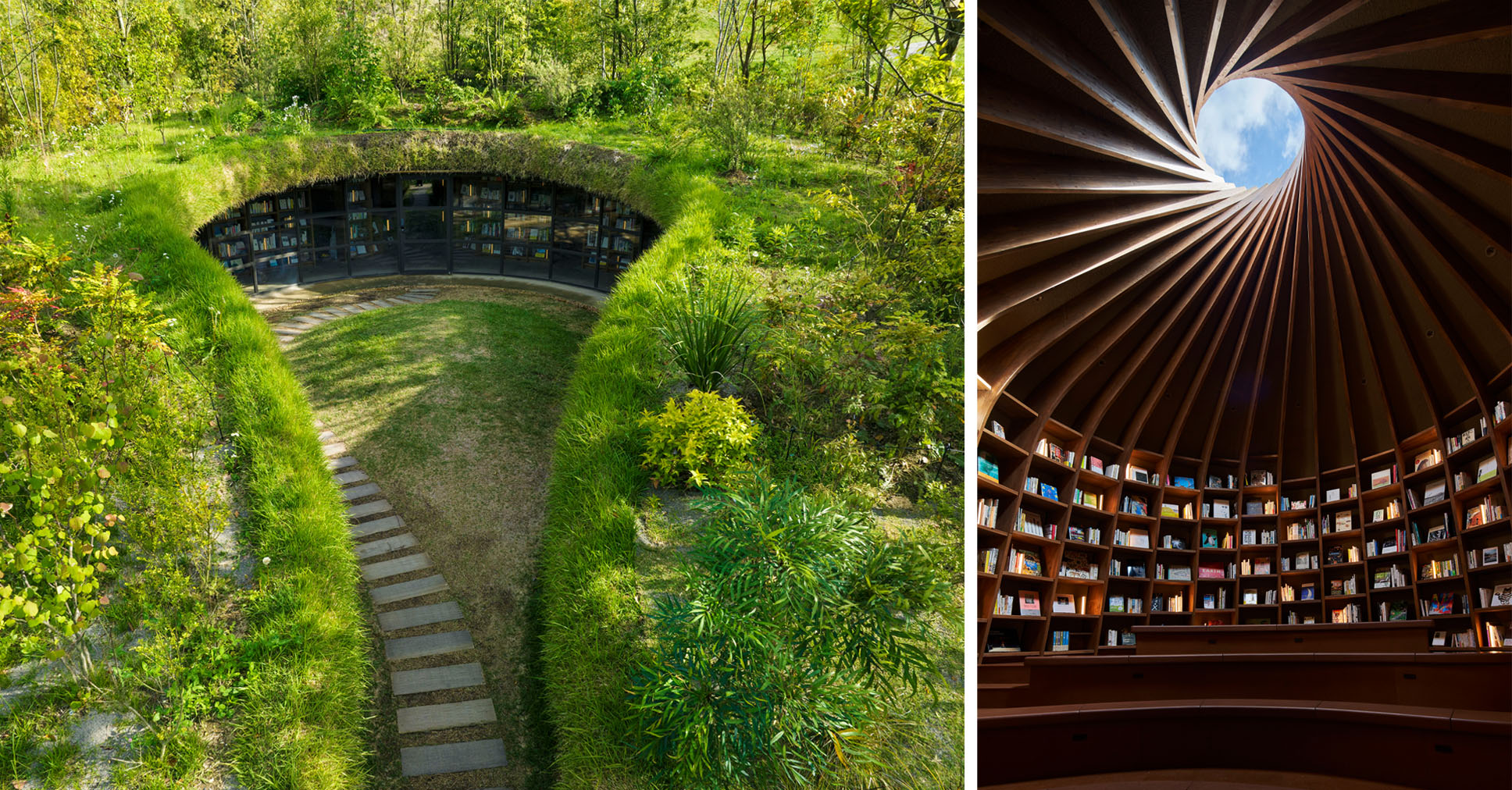 Como el sueño de Tolkien, la Biblioteca de la Tierra no es sólo una hermosa oda a las palabras, sino también un proyecto de regeneración que devuelve a la biosfera un valle que alguna vez estuvo lleno de desechos de construcción a través de la reverdecimiento y la plantación. La flora biodiversa prospera en la superficie, mientras que las secciones de ficción y no ficción se esconden debajo de la superficie, creando un entorno subterráneo verdaderamente impresionante.