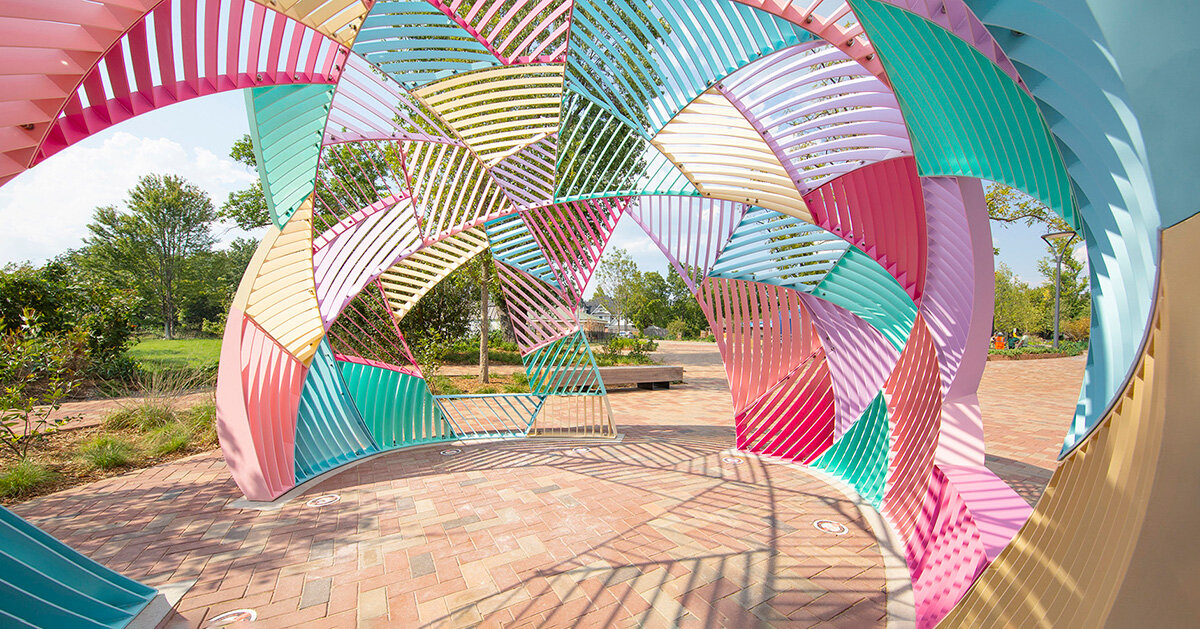 El colorido pabellón abovedado de Hou de Sousa, con sede en Arkansas, se asemeja a una colcha flotante