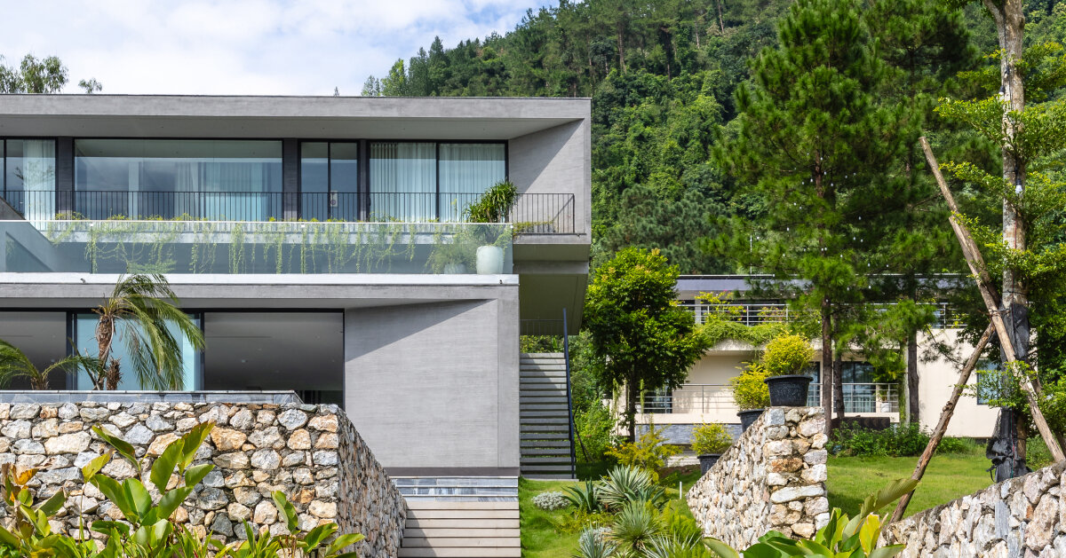 Los volúmenes apilados definen la forma de Stella Casa, con cada nivel colocado deliberadamente a lo largo de la pendiente para maximizar la experiencia espacial y las vistas panorámicas. entre bloques, Embajada en Vietnam Idee Architects colocó estratégicamente una serie de patios y pasillos para crear espacios verdes continuos que conectan naturalmente diferentes áreas de la casa. Una de las características más destacadas de esta villa es el uso extensivo de acristalamiento, que permite que abundante luz natural llene el interior, creando una atmósfera luminosa y aireada durante todo el día.