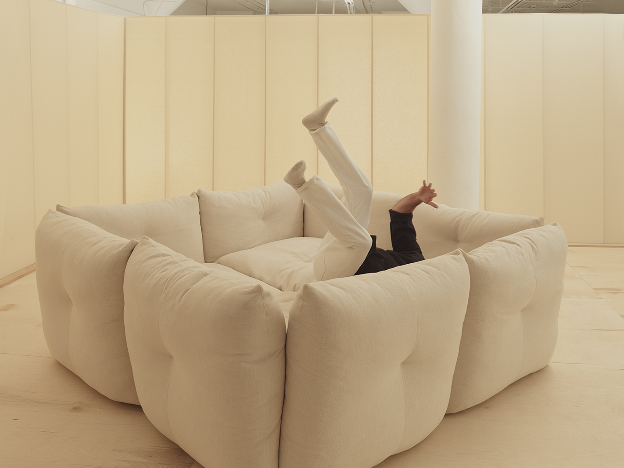 La impecable artesanía y la calidad que asociamos con Knoll cobran vida gracias a Perron, que se especializa en crear proyectos únicos y hermosos. «Todo lo que hago tiene un toque de humor», dijo. «Quería que el sofá evocara sorpresa y emoción». De hecho, el sofá llama la atención, pero con un toque atrevido. Pillow Fort ha madurado y limpiado bastante bien.