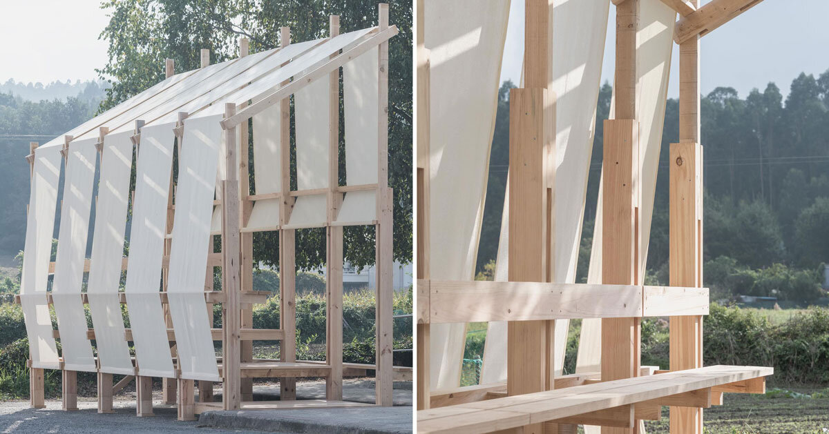 La estructura de Alpendre está compuesta de madera y tela translúcida.