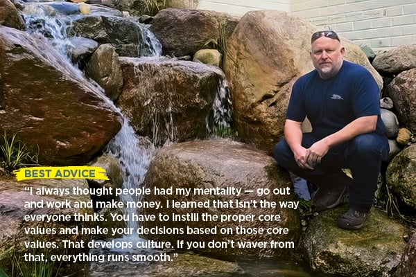 Cuando mi esposa y yo compramos la casa en la que vivimos ahora, ella quería una piscina. He trabajado en la industria del paisajismo y la ecología durante muchos años. Empecé a diseñar y construir más. Cuando decidimos que queríamos una piscina, decidimos que no queríamos la típica caja de concreto que debe cubrirse seis meses al año; vivimos en Illinois, donde todo está preparado para el invierno y cerrado. Queríamos algo más natural y sin filtros porque ella odia el cloro. No pudimos encontrar a nadie para construirlo, así que continuamos buscando respuestas. Encontramos un constructor de estanques que dijo que podía hacerlo. Terminé yendo a trabajar para él. Mi fábrica se construyó y floreció a partir de ahí. Eso fue a finales de 2004.