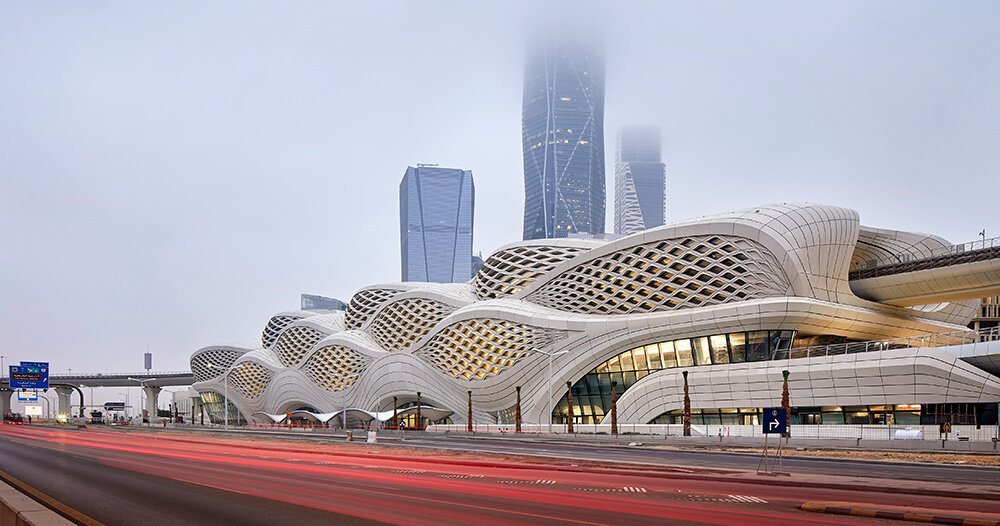Inaugurada la estación de metro diseñada por Zaha Hadid Architects en Riad, con una fachada de celosía ondulada