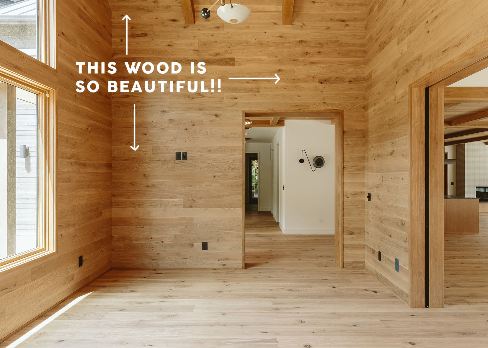 Hay algunas prioridades emocionales en la decoración: algo que realmente deseas puede afectar cómo te sientes cuando lo miras. Originalmente teníamos esta intención para la casa de mi hermano: no mucha madera. Pero a medida que los presupuestos de gastos siguieron aumentando, las cosas empeoraron. Esta es una parte normal pero peligrosa del proceso, porque en medio de la renovación, no puedes ver con claridad y puedes abandonar tus alguna vez «altas prioridades emocionales» en favor de las necesidades. Tener una habitación de madera siempre está en el tablero de inspiración, pero hasta cierto punto no es una prioridad en el presupuesto. Entonces un día…