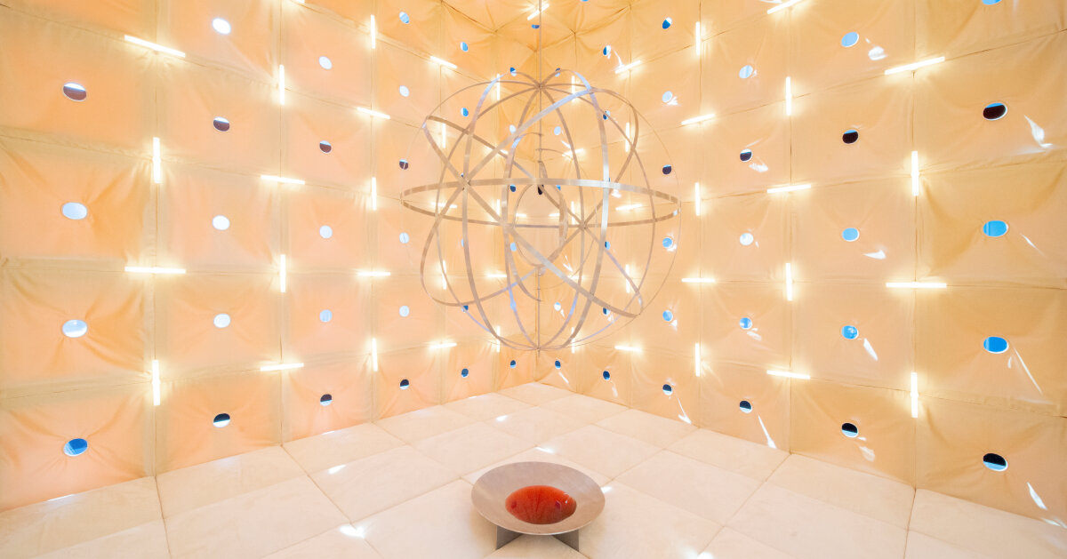 un pabellón multisensorial que invita a los visitantes a un viaje meditativo
