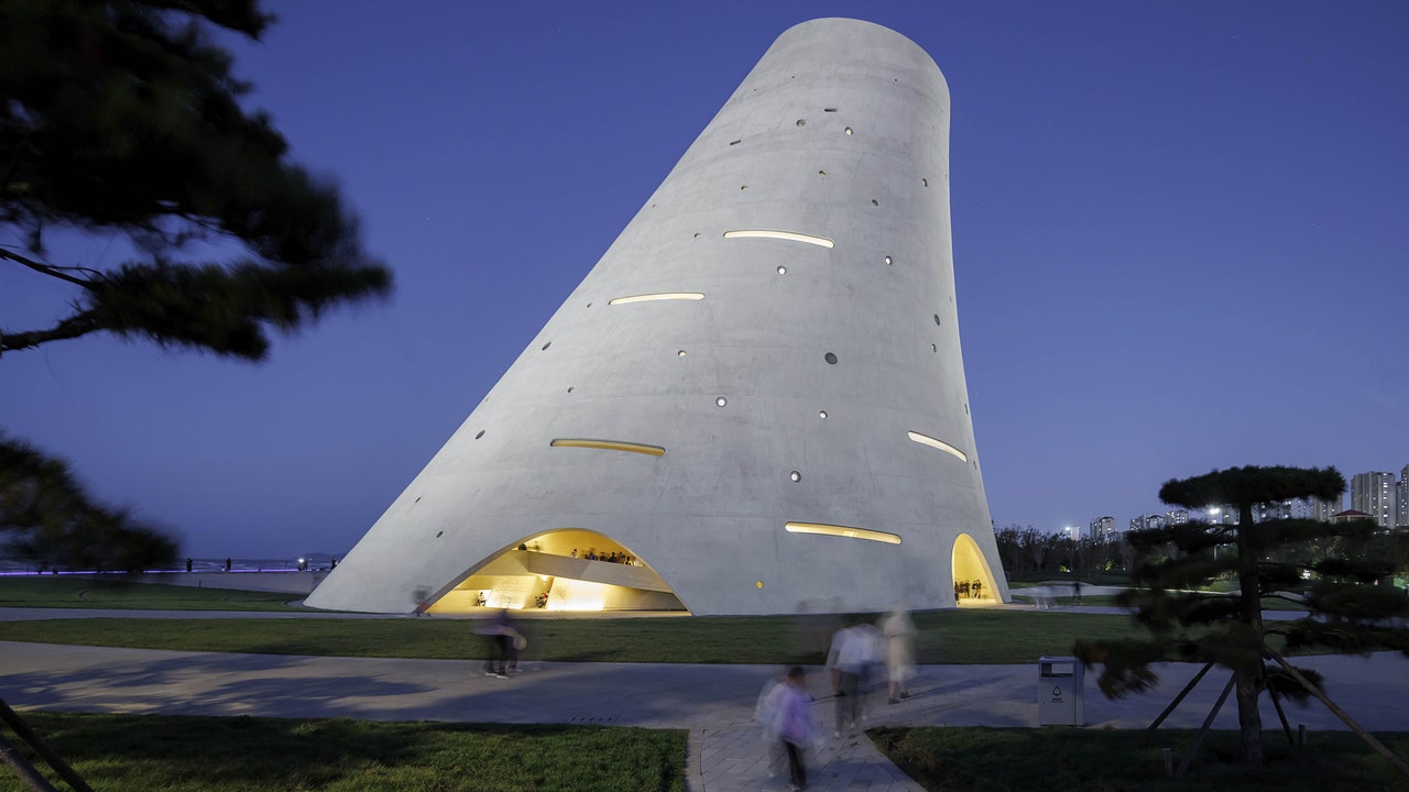 Hay una biblioteca pública en lo alto del edificio, que alberga 5.000 volúmenes, muchos de ellos sobre ecología marina. Aparte de la cafetería de la planta baja, es la única parte del edificio de 53,410 pies cuadrados con aire acondicionado, no para la gente, sino para los libros. El resto se enfría mediante el aire que sube a través de lo que es esencialmente una chimenea gigante. Encima de la biblioteca se encuentra el «espacio fenomenal», llamado así porque el óculo en su techo abovedado sirve como ojo de buey hacia el universo. (Por ejemplo, al mediodía del solsticio de verano, el sol proyecta un círculo perfecto sobre una pequeña piscina de bronce y el agua del interior comienza a arremolinarse). Mientras tanto, al nivel de la plaza, un canal poco profundo corre a lo largo de la sombra de la cima del edificio. durante el equinoccio. «Todo el edificio está tallado por el movimiento del sol», explicó Huang. «Se puede decir que es un reloj de sol muy complejo», añadió Li.