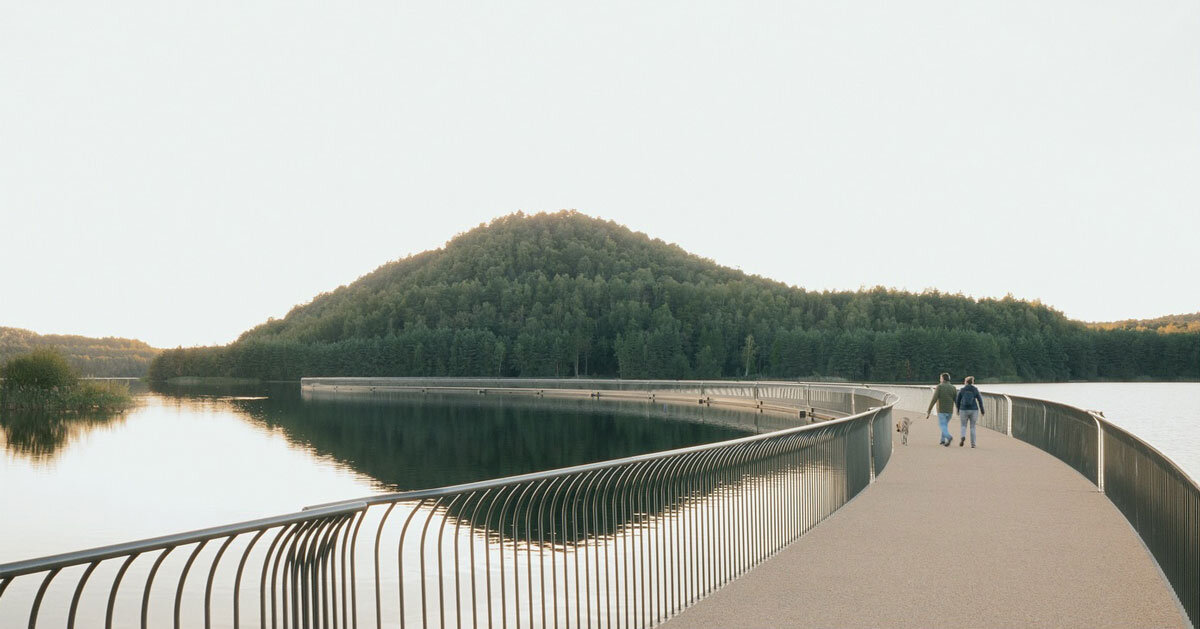 estudio BuroLandschap integra pontones en el paisaje y conecta físicamente dos terrenos mineros. Inspirado en las formas naturales y la secuencia de Fibonacci (la proporción áurea), el puente adopta una forma orgánica y curva en lugar de una conexión recta a través del agua. Esta elección de diseño ralentiza el ritmo de ciclistas y caminantes, animándolos a detenerse y disfrutar de una serie de vistas espectaculares, integrando la estructura en su entorno.