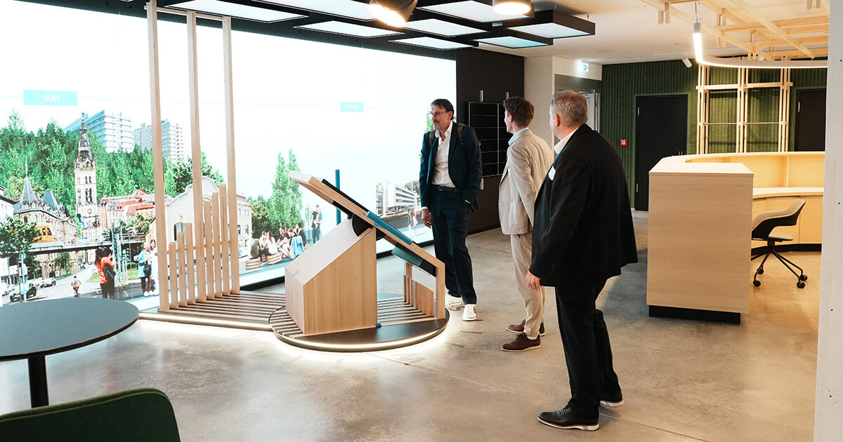 Mientras tanto, en el Solar Lounge, la tecnología ASB GlassFloor se demuestra aún más a través de una pared LED adicional de alta resolución de 8 metros de largo con una densidad de píxeles de 1,9 mm. Esta instalación interactiva muestra los flujos de energía en tiempo real a través del sistema de monitoreo de energía y también puede usarse como parte de una herramienta de consulta. Los visitantes pueden explorar cómo se implementa la transición energética urbana y mostrar los resultados de simulaciones personalizadas en esta extensa superficie integrada en LED.