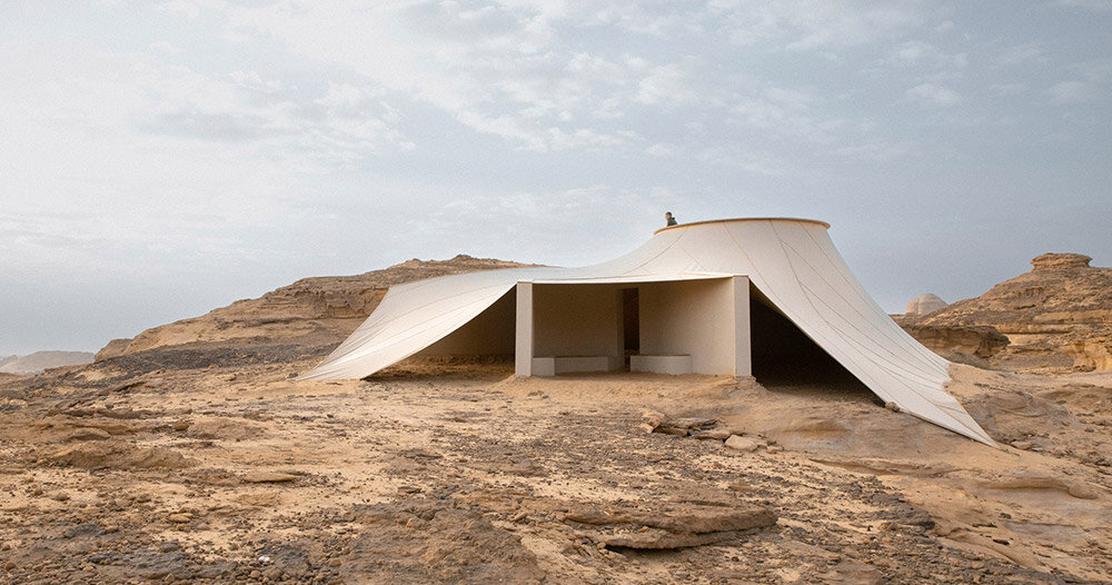 Clover Studio imita las tiendas beduinas para difundir las vistas de Hegrah en el desierto de Al Ula