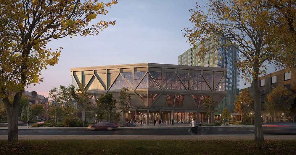 Casa del árbol de David Rubinstein, diseñada por: sala de estudio Universidad de Harvard bostónredefiniendo el tipo de sala de conferencias. Estos edificios suelen estar aislados, consumen mucha energía y están aislados de su entorno. Como primer gran edificio de madera de la Universidad de Harvard, casa del arbol Enfatizar la construcción baja en carbono y crear un espacio que fomente el diálogo, la colaboración y la conexión con la comunidad y el medio ambiente circundante.