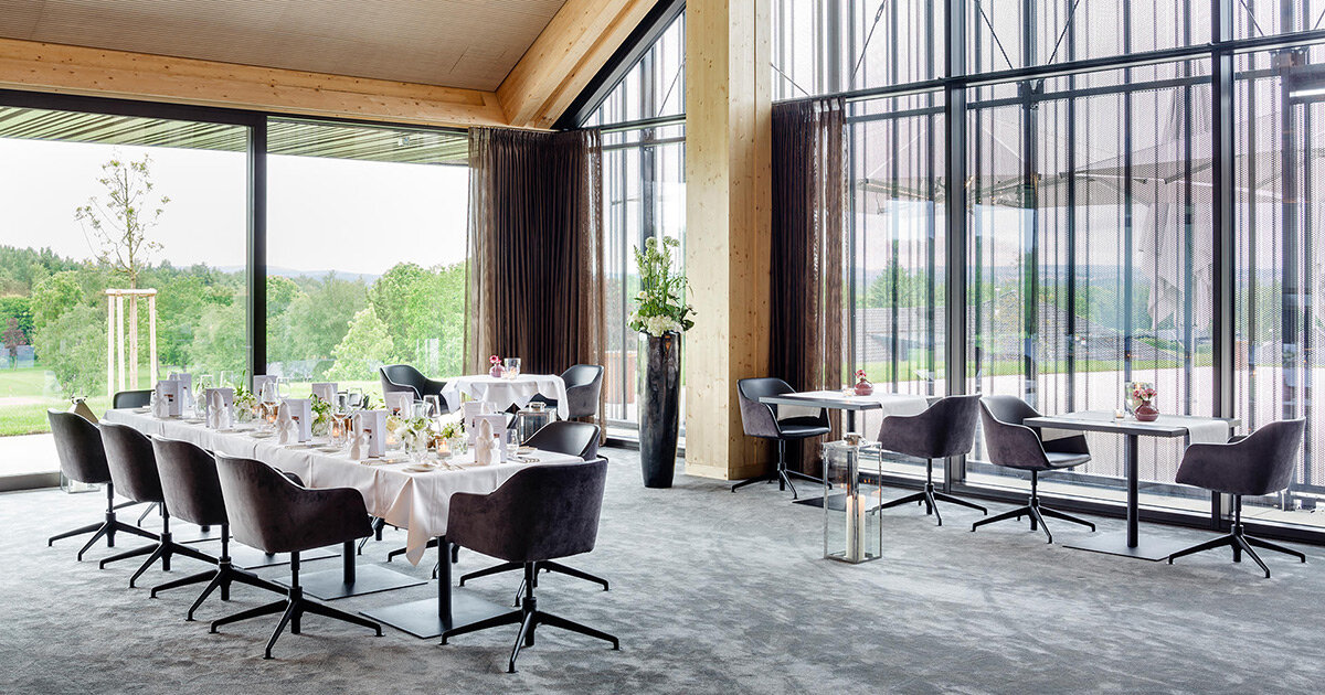 El Öschberghof es un hotel de cinco estrellas superior desde su remodelación en 2019 por el arquitecto Allmann Sattler Wappner, y Brunner incluso creó muebles personalizados con accesorios especiales. El proyecto destaca la flexibilidad y la capacidad de la empresa para cumplir con los más altos requisitos con soluciones personalizadas. Una mezcla de colores y materiales en cuero y tela en las zonas de comedor y salón. club boutique y corona El sillón tapizado crea un contraste apasionante, iluminando la estética general de los materiales naturales en tonos suaves. Otros productos como pivote escritorio de pie o clase primera Los bancos apilables también resultaron ideales para Öschberghof.