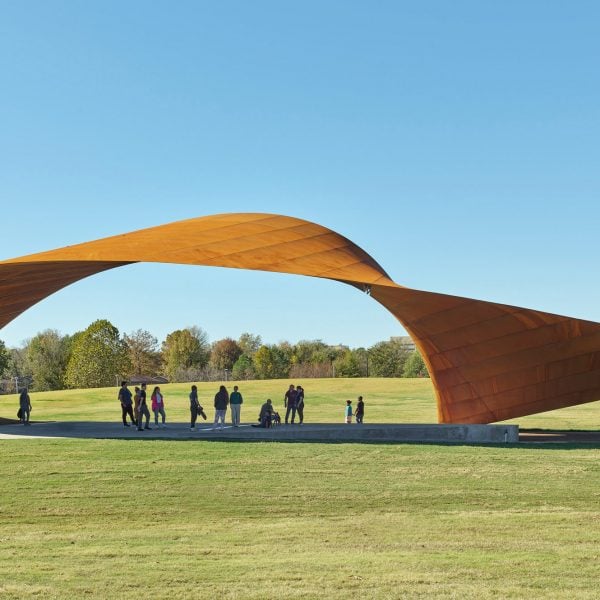 Trahan Architects crea un pabellón ‘ingrávido’ hecho de acero doblado a mano