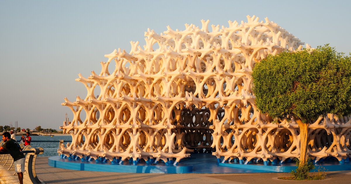 Sí: Históricamente, la arquitectura en los Emiratos Árabes Unidos ha utilizado coral, que permite que las paredes respiren y crea pasivamente un ambiente naturalmente confortable sin depender del enfriamiento mecánico, lo que conlleva costos ambientales. Queríamos volver al punto de que cuando te sientas dentro del Balzac, incluso bajo el sol del mediodía, estás a la sombra y tienes un flujo de aire pasivo y natural. Además, la idea es reinterpretar la arquitectura vernácula convirtiendo los subproductos industriales en activos. ¿Por qué los residuos no se consideran parte de nuestro medio ambiente? Tiene el potencial de convertirse en una nueva lengua vernácula.