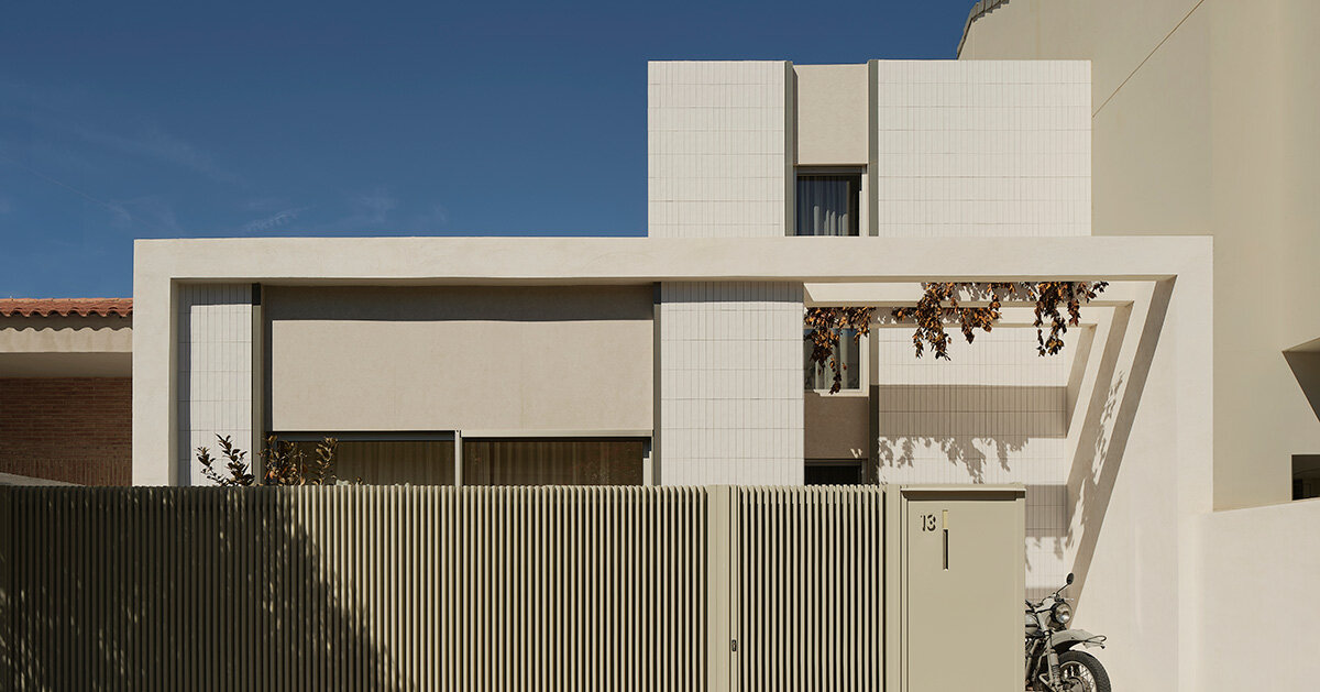 Viruta Lab, el estudio de arquitectura y diseño de interiores liderado por David Puerta y María Daroz, presenta Casa Gesso, Residencial proyecto valenciano, Españaque conmemora el legado artístico de la pionera del arte feminista español Ángela García Cordogne. La casa cuenta frente Azulejos de color hueso, inspirados en los tradicionales lavaderos.