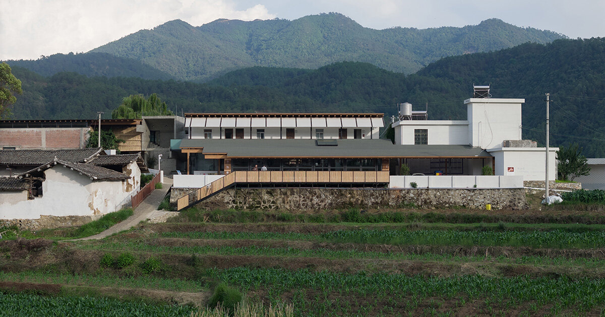 Ubicada en una remota zona montañosa, Lianhe Village es un ejemplo clásico del impacto de la despoblación rural. Las alguna vez vibrantes oficinas y escuelas del panchayat han quedado reducidas a reliquias que reflejan la vitalidad pasada de la comunidad y los desafíos presentes. Como parte de la estrategia de revitalización rural de China, equipo El proyecto detrás de CLAB Architects revitaliza el sitio a través de cuatro espacios funcionales (cocina-comedor, pequeño museo, sala de estar al aire libre y biblioteca) que reflejan la configuración histórica. «Tres edificios, una presa».