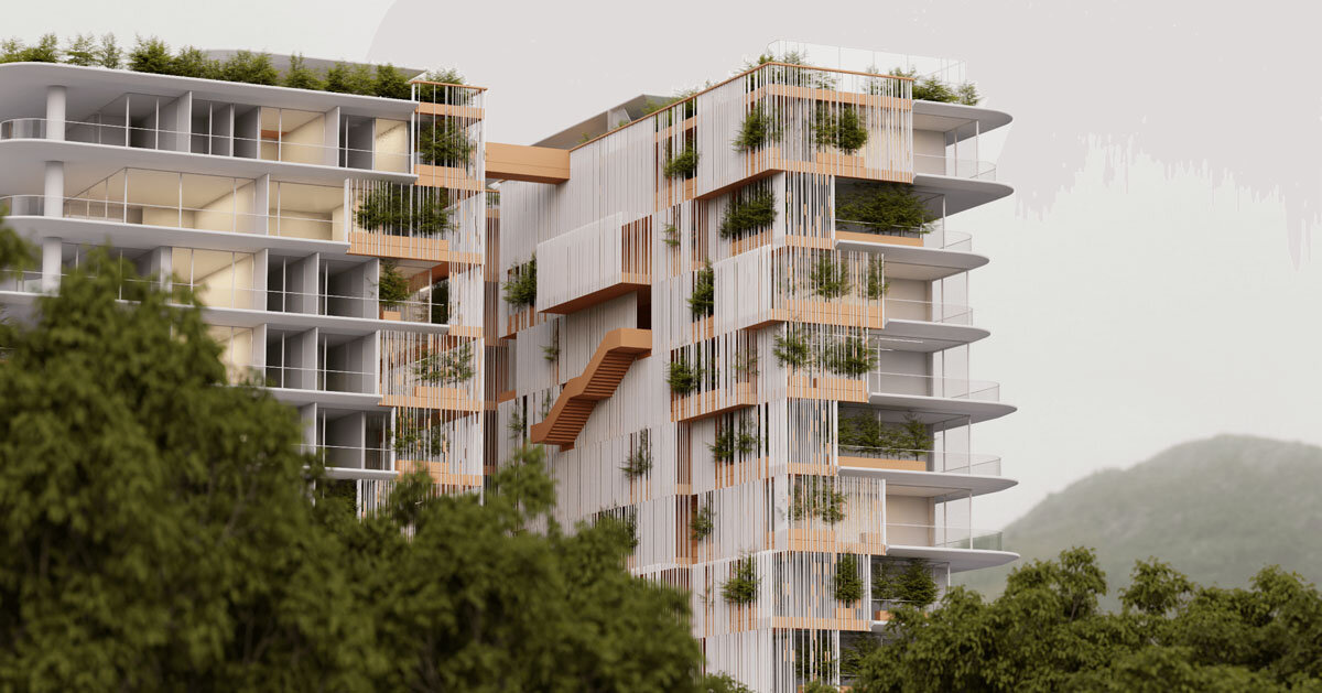 Diseño colgante Sabah oficina de arquitectura Promover la interacción dinámica entre los residentes y la ciudad. Los espacios comerciales están integrados en la base, brindando servicios accesibles tanto para los residentes como para el público, lo que permite que el edificio contribuya a la experiencia urbana. Al mismo tiempo, los pasillos abiertos y los patios internos permiten ventilación y cierto grado de apertura, en contraste con los volúmenes más cerrados del desarrollo circundante. El plan tiene como objetivo desafiar los estrictos límites tradicionales de los desarrollos típicos de la costa del Caspio invitando a la ciudad a entrar en el edificio manteniendo al mismo tiempo la privacidad de los residentes. La apertura del diseño contrasta con las estructuras aisladas más comunes, proporcionando un espacio acogedor y propicio para la interacción.