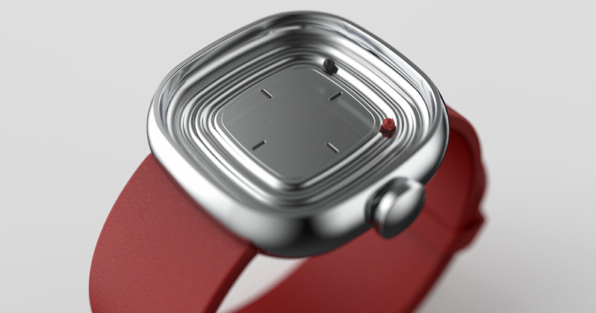 Elif Bulut imagina un moderno despertador retro mirar Utiliza una bola que rueda sobre el dial para mantener el tiempo. Este es un accesorio simple que incluye principalmente acero y plástico como componente principal. La suave esfera cuadrada está forjada en metal y grabada con líneas profundas que siguen la forma del reloj, creando una sensación de infinito y de cronometraje. Este enfoque de diseño es similar al estilo de patrón inclinado que se encuentra en los jardines zen japoneses.